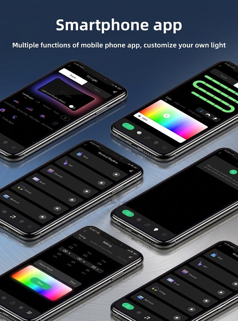 You control everything through our free mobile app. The app lets you easily switch between modes (like Movie, Gaming, Music), adjust brightness, and customize your lighting. Itâs all right at your fingertips.